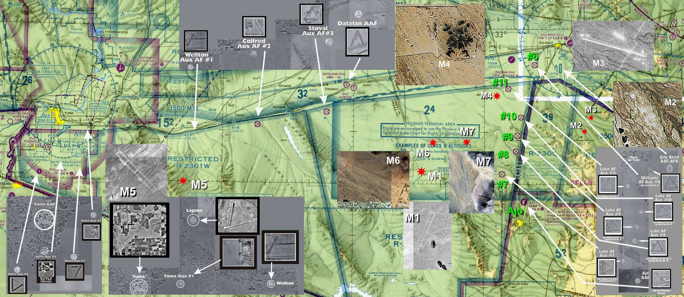 Sept. 18, 2007 update: Correction to Pylant/Southwest Airways airport in Phoenix and addition of two auxiliary airfields (Aux #2 and #3) that supported Thunderbird No. 1 airport in World War II.