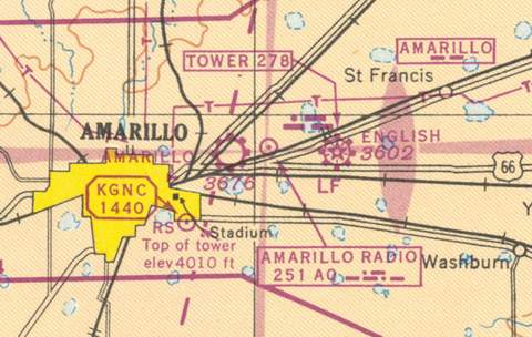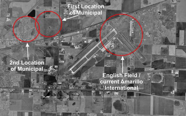 There was an earlier location of the Amarillo Municipal, but the best we have so far is the distance and current data would have it adjoining the Municipal airfield just to the east. The picture below shows the relationship between the Municipal and English.