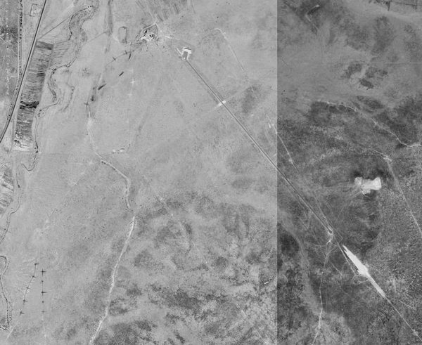 Finding the same features in the 2002 urban photograph allowed for locating the position of the airfield.